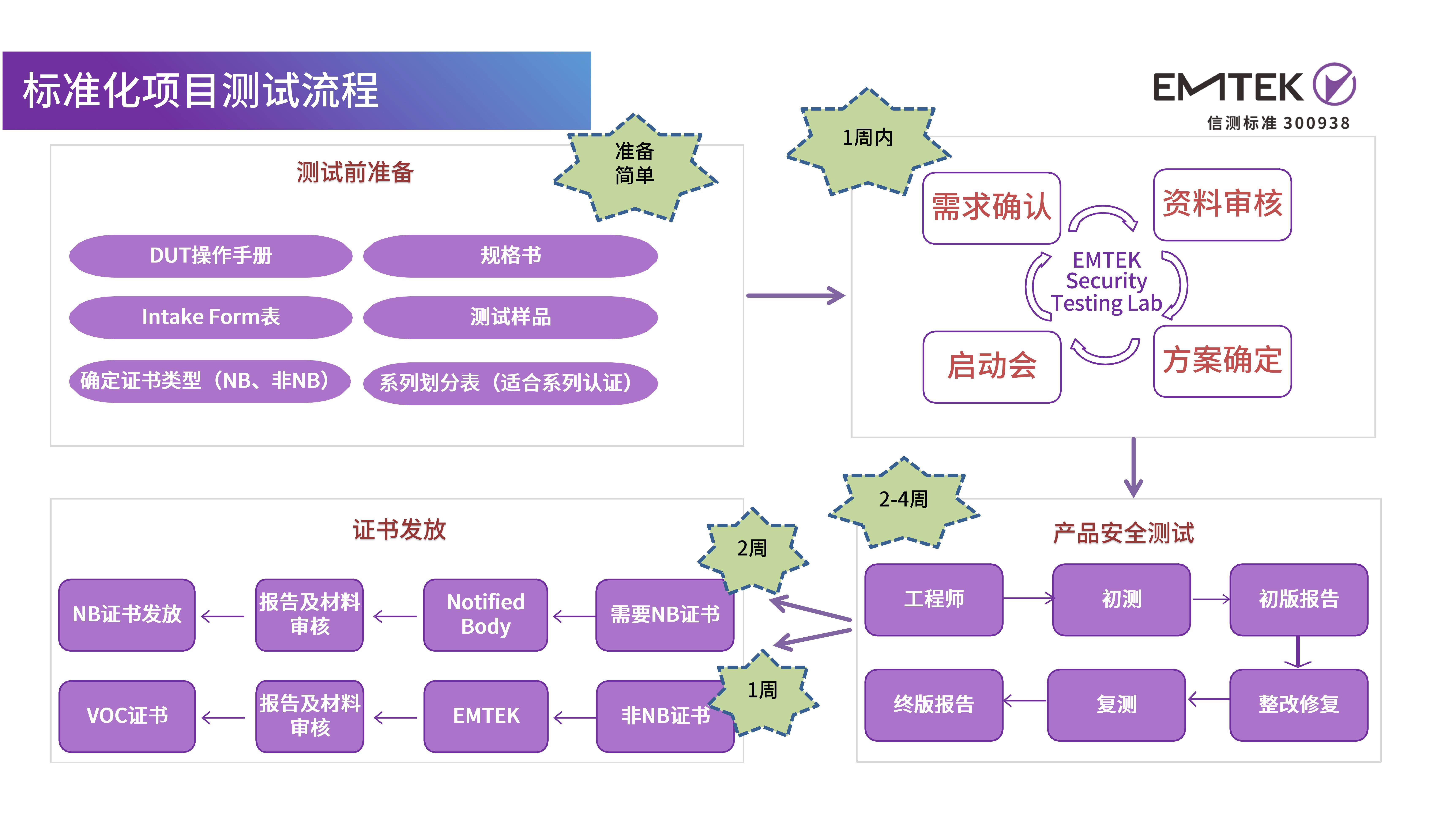根据产品的功能复杂程度不同,评测周期也有所不同,一般情况下,在收到资料和样机起算,4-5周内可完成评测及发证。